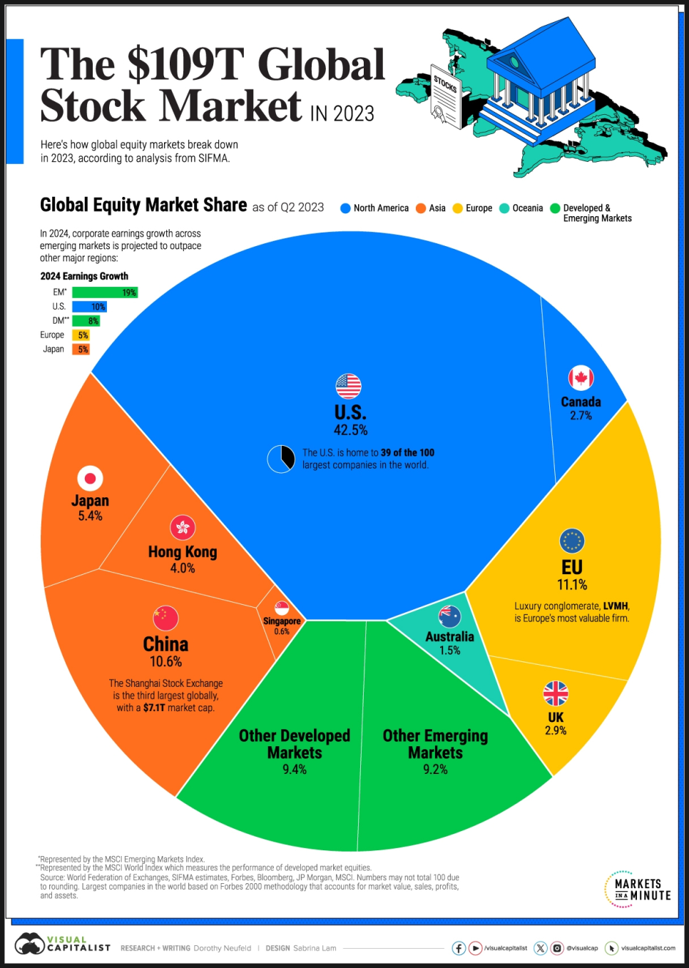 글로벌 패시브 자금도 대부분 미국에 집중되고 있고, 전 세계 연기금과 기관들도 미국 시장을 핵심 자산으로 둡니다. 세계 시가총액의 거의 절반이 미국에 몰려 있고, 알파벳, 애플, 아마존, 엔비디아 같은 기업들이 모두 미국 증시에 있습니다. 단지 유명해서가 아닙니다. 성장의 궤도가 다르기 때문입니다.