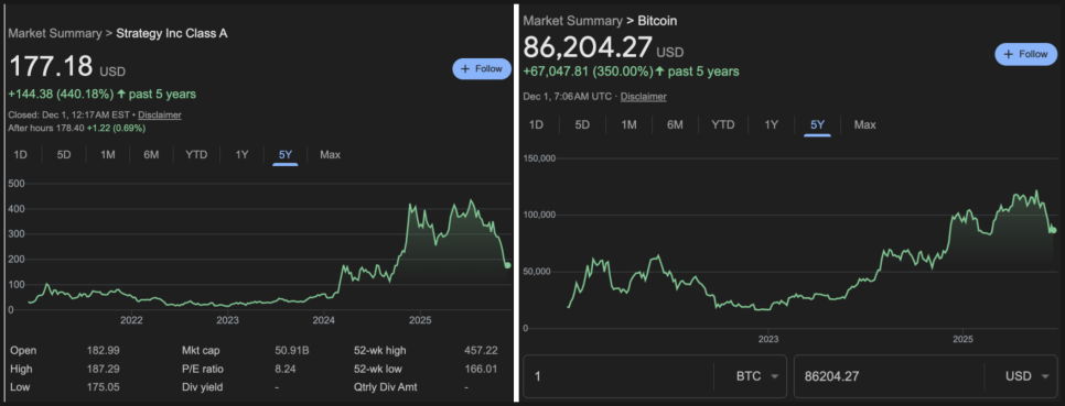 확실히 산전수전 다 겪은 기업 CEO로서 개인 투자자들과는 다르게 단기적인 변동성보다는 더 넓은 시계열로 전망을 내리고 있는 것 같은데요. 그럼에도 최근 비트코인 가격과 스트래티지(MSTR) 주가는 개인 투자자들에게 우려를 낳고 있습니다. 과연 몇 년 후에 지금의 조정은 역대급 매수 기회로 기억될 수 있을지 지켜보도록 하겠습니다.