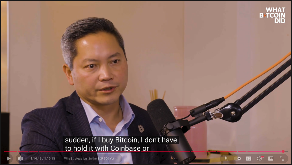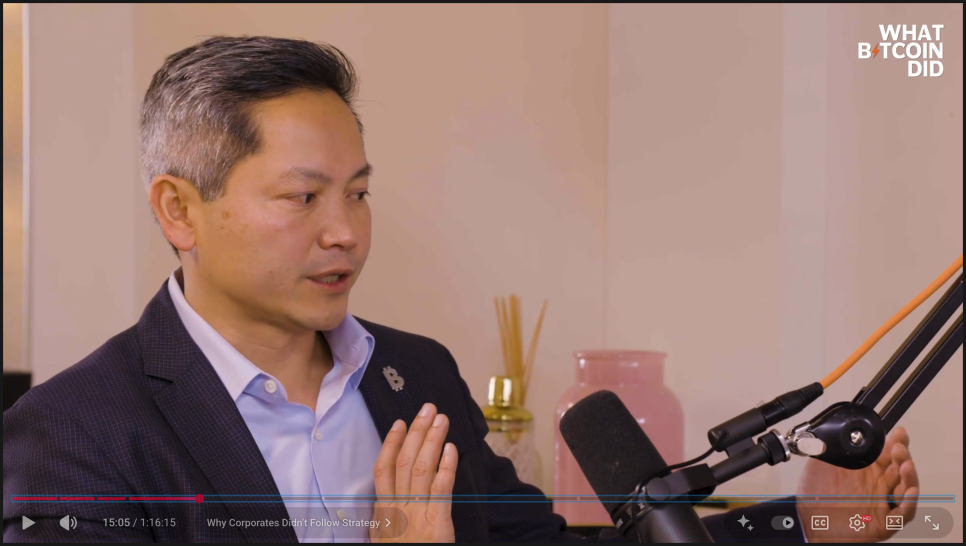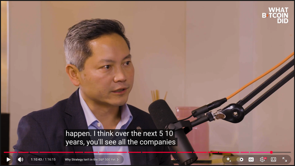 폰 레는 향후 5년에서 10년 사이에는 대부분의 기업이 비트코인을 직접 보유하든, 혹은 스트래티지의 우선주 같은 상품을 보유하든 어느 방식으로든 비트코인 시스템에 참여하게 될 것이라고 전망했는데요. 그러자 진행자가 “그렇다면 왜 지금까지 대기업들이 이런 움직임을 거의 보이지 않았을까요? 애플처럼 현금이 많은 회사라면 1~2% 넣는 건 아무 일도 아닌데 말이죠”라고 질문했습니다.