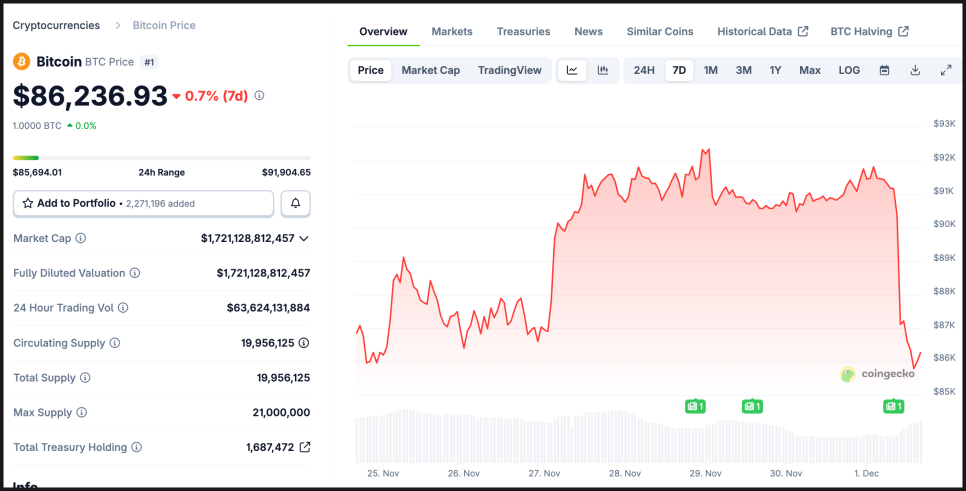2025년 12월 1일 암호화폐 해외 이슈를 정리해 드리겠습니다.