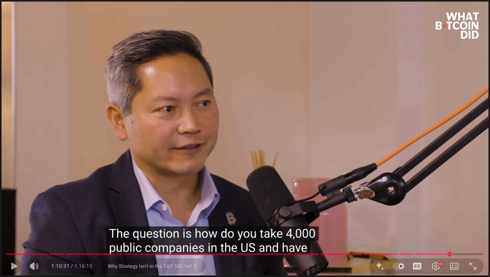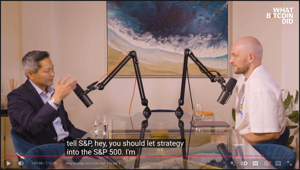 S&P500 지수 편입 문제에 대해서는 규정의 문제가 아니라 정치적 문제라고 지적했습니다. S&P와 MSCI의 고객이 블랙록이나 뱅가드 같은 대형 자산운용사인데, 이들 중 일부가 비트코인에 공개적으로 부정적인 견해를 가지고 있기 때문이라는 설명입니다. 결국 시장의 주도권은 개인 투자자에게 있으며, 개인 투자자의 요구가 늘어나면 지수 측도 변할 수밖에 없다고 말했습니다.