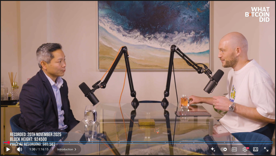 그럼 스트래티지 CEO 폰 레(Phong Le)가 실제로 팟캐스트에서 어떤 이야기를 했는지 차근차근 살펴보도록 하겠습니다. 촬영일은 11월 20일이고 당시 비트코인 가격은 85,583 달러였습니다. 스트래티지의 과거와 현재, 미래를 이해하는 데 꽤 중요한 힌트를 얻을 수 있기 때문에 전체적으로 간략하게 다뤄보겠습니다.
