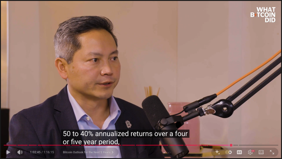 비트코인의 장기 가격 전망에 대해서도 그는 비교적 낙관적인 입장을 유지했습니다. 그는 비트코인이 앞으로도 S&P500 장기 성과보다 높은 수익률을 낼 가능성이 있다며, 연평균 40~50% 성장은 4~5년 주기에서는 충분히 가능한 범위이고, 장기적으로 20~30% 수준도 합리적이라고 설명했습니다. 그는 이런 기대가 복잡한 모델이 아니라 “전 세계 사람들이 좋아하고, 공급량은 고정된 자산”이라는 단순한 사실에서 나온다고 말했습니다.