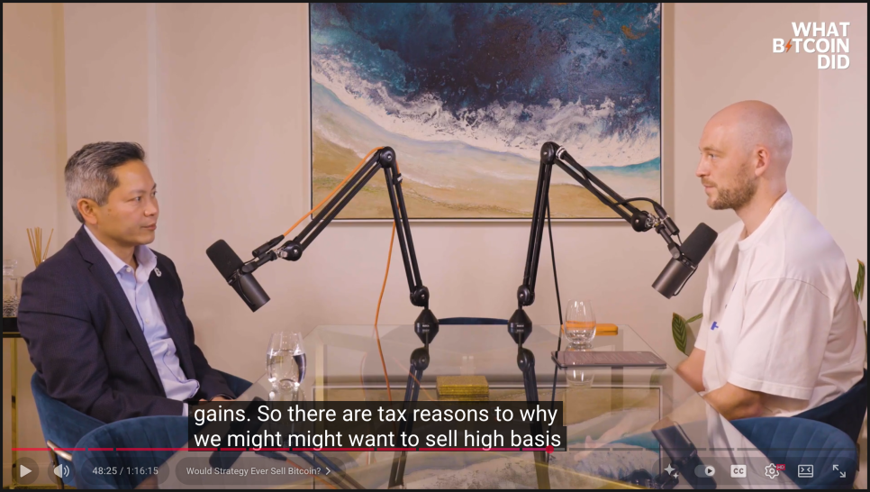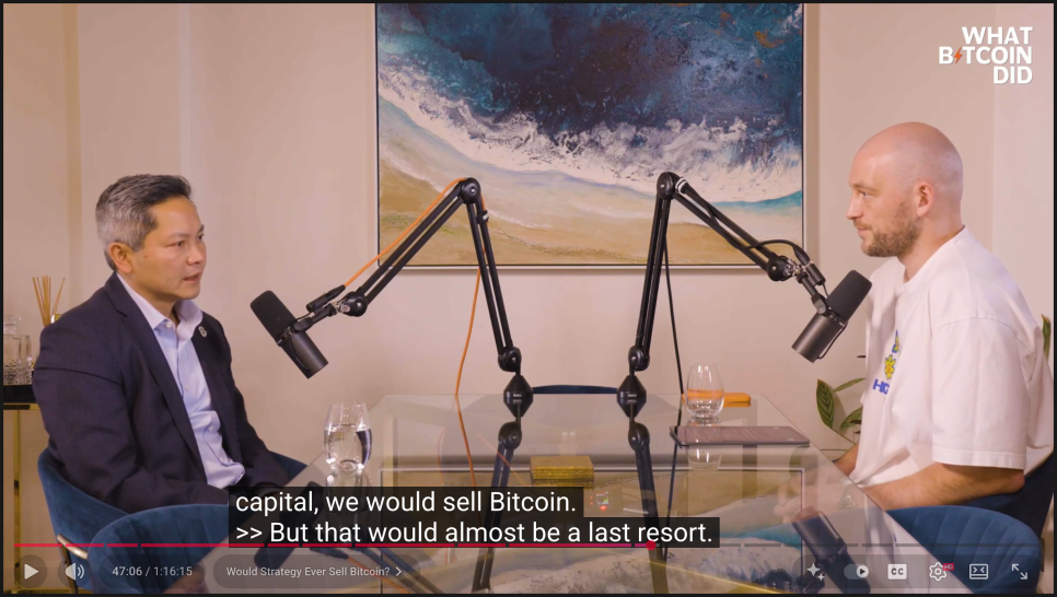 근데 이번 팟캐스트에서 호스트가 집요하게 파고든 부분은 따로 있었습니다. 바로 스트래티지의 비트모인 매도 가능성이었죠. 회사 입장에서 가장 민감한 질문, 즉 “비트코인을 절대 팔지 않을 것인가?”라는 문제를 정면으로 다룬 겁니다.