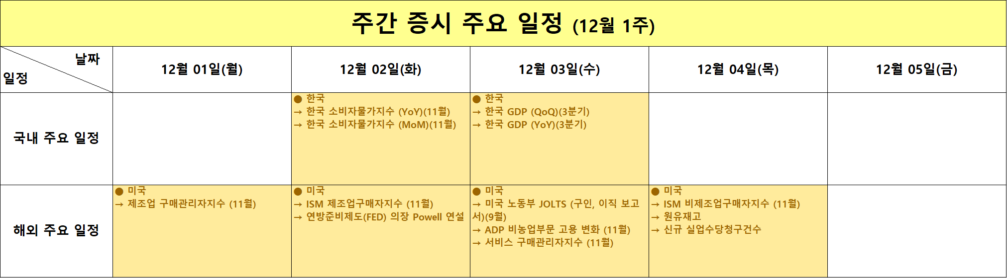 🗓️ 12월 1주차 주요 일정과 시장에 미칠 영향