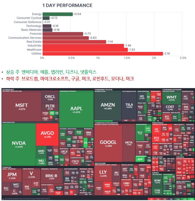 오늘 시장은 전반적으로 금리 이슈와 고점 부담에 따라 확실히 흔들린 하루였던 것 같습니다.