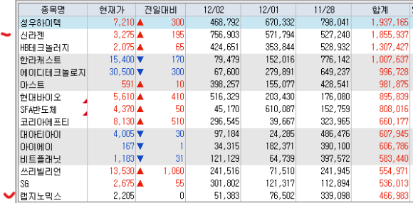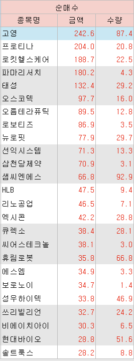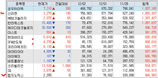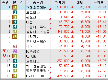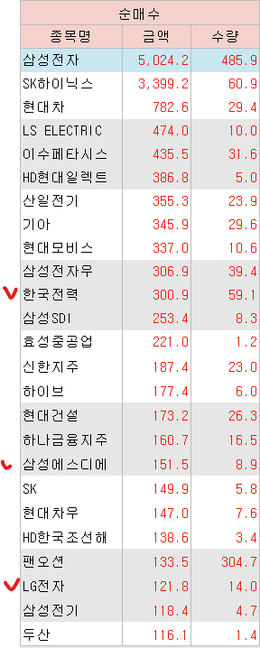 매도 : 하림지주 삼성전자(+41.42%) 삼성SDI HD한국조선해양 성우하이텍 포스코DX 이구산업 팬오션 롯데관광개발 하나투어 HD현대마린엔진 금호타이어 이노와이어리스 비에이치아이 후성 SNT에너지 인텔리안테크 토니모리 신라젠 인벤티지랩 HPSP 클로봇