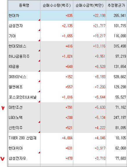 외국인은 KOSPI를 순매수(+13,124억 원, 선물 +6,604억 원). 전기·전자와 운송장비·부품을 매수했고, 기계·장비와 음식료를 매도