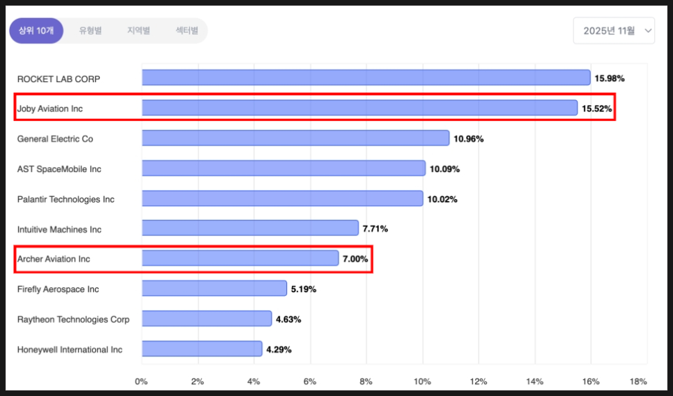 참고로 아처와 조비는 제가 최근에 소개해 드린 ETF 상품인 1Q 미국우주 항공테크 ETF에 둘 다 담겨 있는데요. 비중으로 따지자면 조비가 15.5%, 아처가 7%로 조비가 두 배 정도 더 많습니다. 2026년에 각각 수익률을 비교해보는 것도 재밌을 것 같습니다.