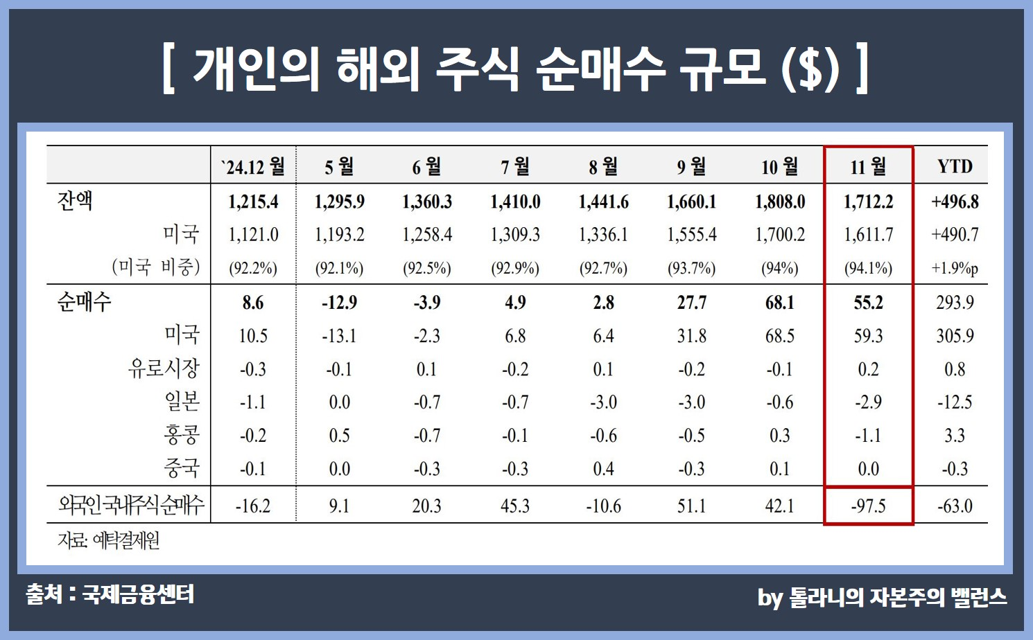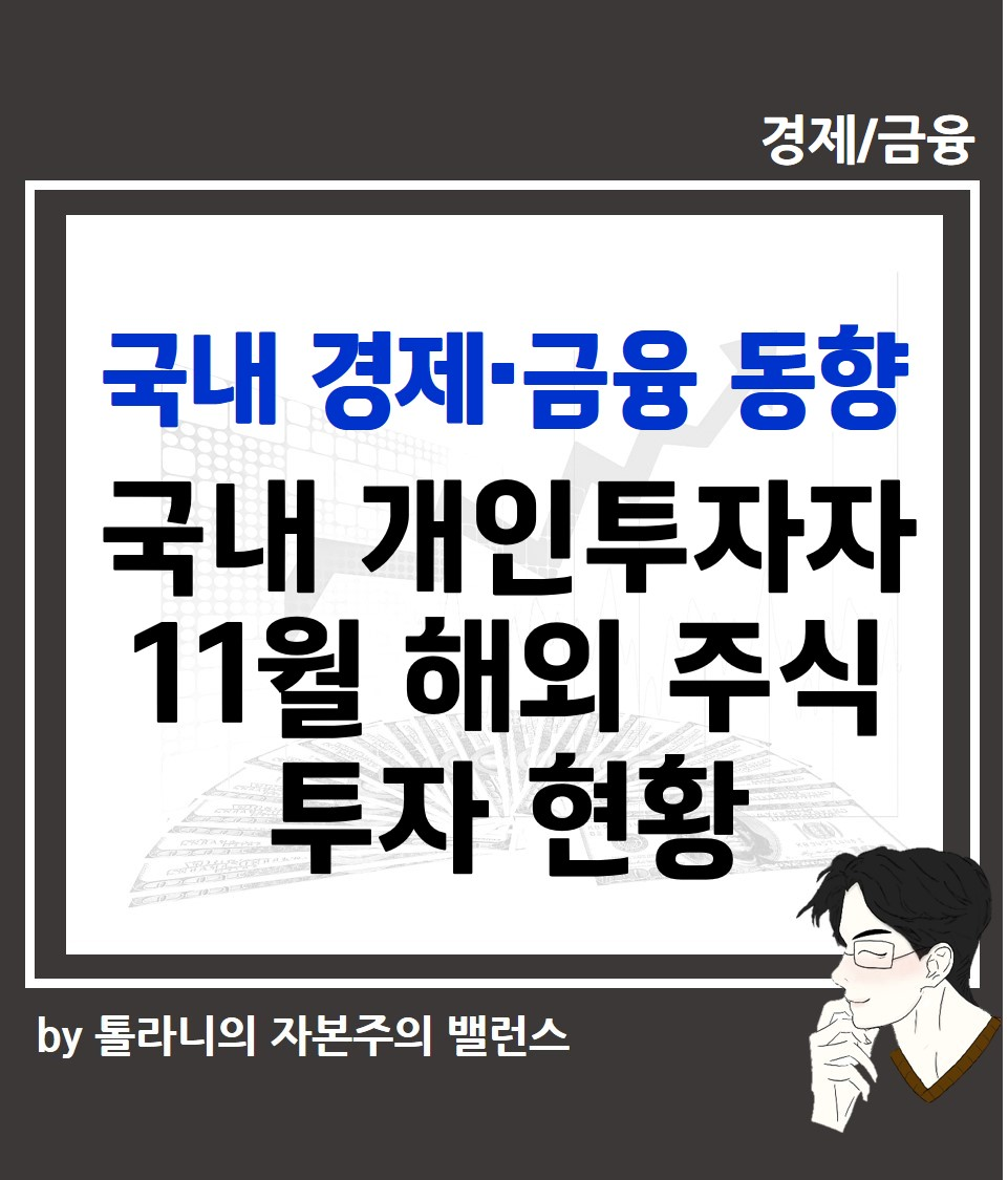 이에 '국내 개인투자자들의 11월 해외 주식 투자 현황' 관련하여 국제금융센터 보고서를 통해 좀 더 자세히 알아보도록 하겠습니다.