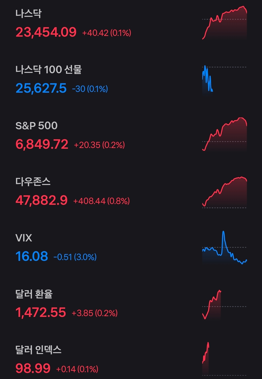 미국 증시는 주요 지수가 하루 기준으로는 나스닥과 S&P500이 소폭 상승하고 다우 지수가 상대적으로 강한 흐름을 보이면서 겉으로는 무난한 하루였지만 변동성 지수는 16선까지 내려가 단기 공포가 상당 부분 진정된 상태입니다. 하지만 투자 심리를 보여 주는 공포·탐욕 지수가 여전히 공포 영역인 20대 중반에 머물고 있다는 점은 투자자들이 지수의 움직임보다 환율과 금리 같은 거시 변수에 더 민감하게 반응하고 있음을 보여 줍니다. 달러 인덱스가 98선으로 내려앉는 가운데도 원·달러 환율은 1470원대에 머무르며 높은 수준을 유지하고 있어 국내 투자자에게는 달러 약세와 원화 약세가 동시에 나타나는 다소 이례적인 환경이 이어지고 있고 일본 장기금리 상승이 엔화 강세 전환과 글로벌 자금 재배치를 촉발할 수 있다는 점도 함께 체크할 필요가 있어 보입니다.