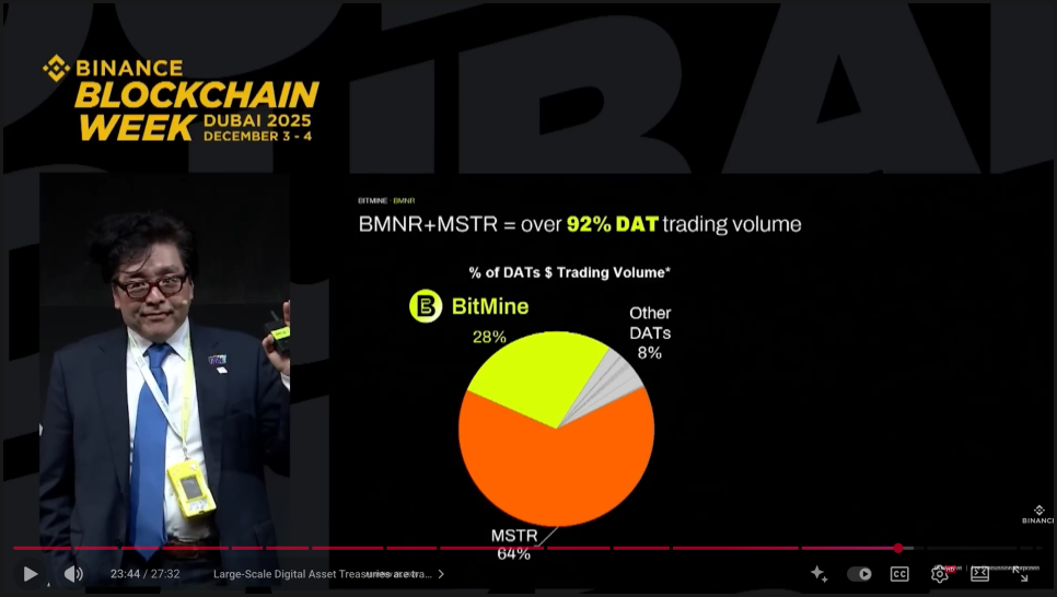 투자자들이 더 관심 있어 하는 건 암호화폐를 직접 보유하는 기업들, 이른바 DAT(디지털 자산 트레저리) 기업들이 왜 월가의 판도를 바꾸고 있는지를 설명하는 부분일 텐데요. 톰 리는 많은 사람들이 이런 기업들을 단순히 비트코인이나 이더리움을 많이 들고 있는 회사 정도로 생각하지만, 실제로는 그 역할이 훨씬 더 크고 금융시장 전체에서 차지하는 위상도 빠르게 높아지고 있다고 말합니다.