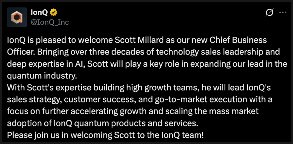 아이온큐는 최근 기록적인 분기 매출을 발표하며 양자 컴퓨팅, 네트워킹, 센싱, 보안 등 풀스택 기술 전반에서 성과를 내고 있는데요. 이런 상황에서 밀러드의 역할은 아이온큐가 보유한 기술을 산업 현장에서 실제로 활용하도록 만들고, 양자·AI 융합 분야까지 포함해 시장 확대를 가속하는 데 있습니다. 특히 양자 기술은 아직 초기 단계지만, 기업들이 점차 실질적 활용 사례를 찾기 시작한 만큼, 세일즈와 파트너십 전략의 중요성이 커진 시점입니다.