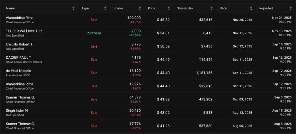 공시를 보면 튜버는 지난 11월 11일 약 2천 주를 매수했고 평균 가격은 54.815달러입니다. 11억 달러 정도 규모인데, 이사급으로 봤을 때 큰 규모는 아닙니다. 다만 고위 임원이 자기 돈으로 직접 장내 매수에 나섰다는 점이 투자자들에게 매력 포인트로 다가올 수 있겠습니다. 회사 내부 사정을 잘 아는 인물이 미래 전망을 긍정적으로 본다는 뜻이기 때문입니다.