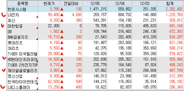 <외국인 연속 3일 순매수 상위 종목>