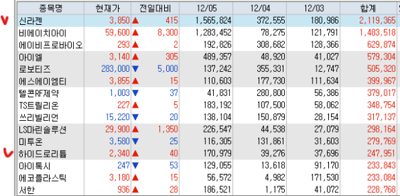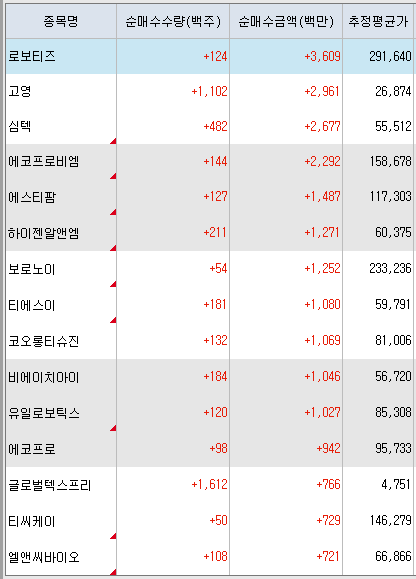 <연기금 순매수 상위 종목>