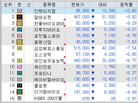 이에 바이오 업종에 대한 투자심리가 악화되며 바이오 업종 전반이 동반 약세를 나타냈음