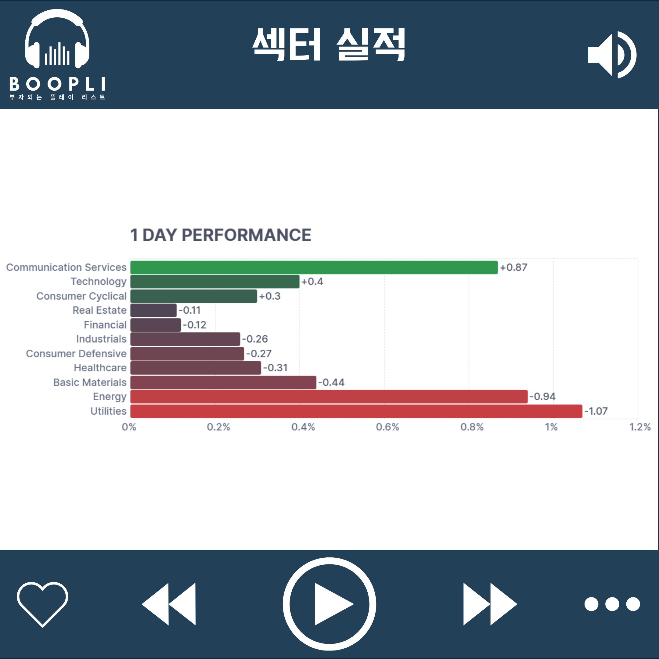 알파벳의 강세로 커뮤니케이션 서비스 섹터가 상승한 반면, 유틸리티 섹터와 에너지 섹터는 하락