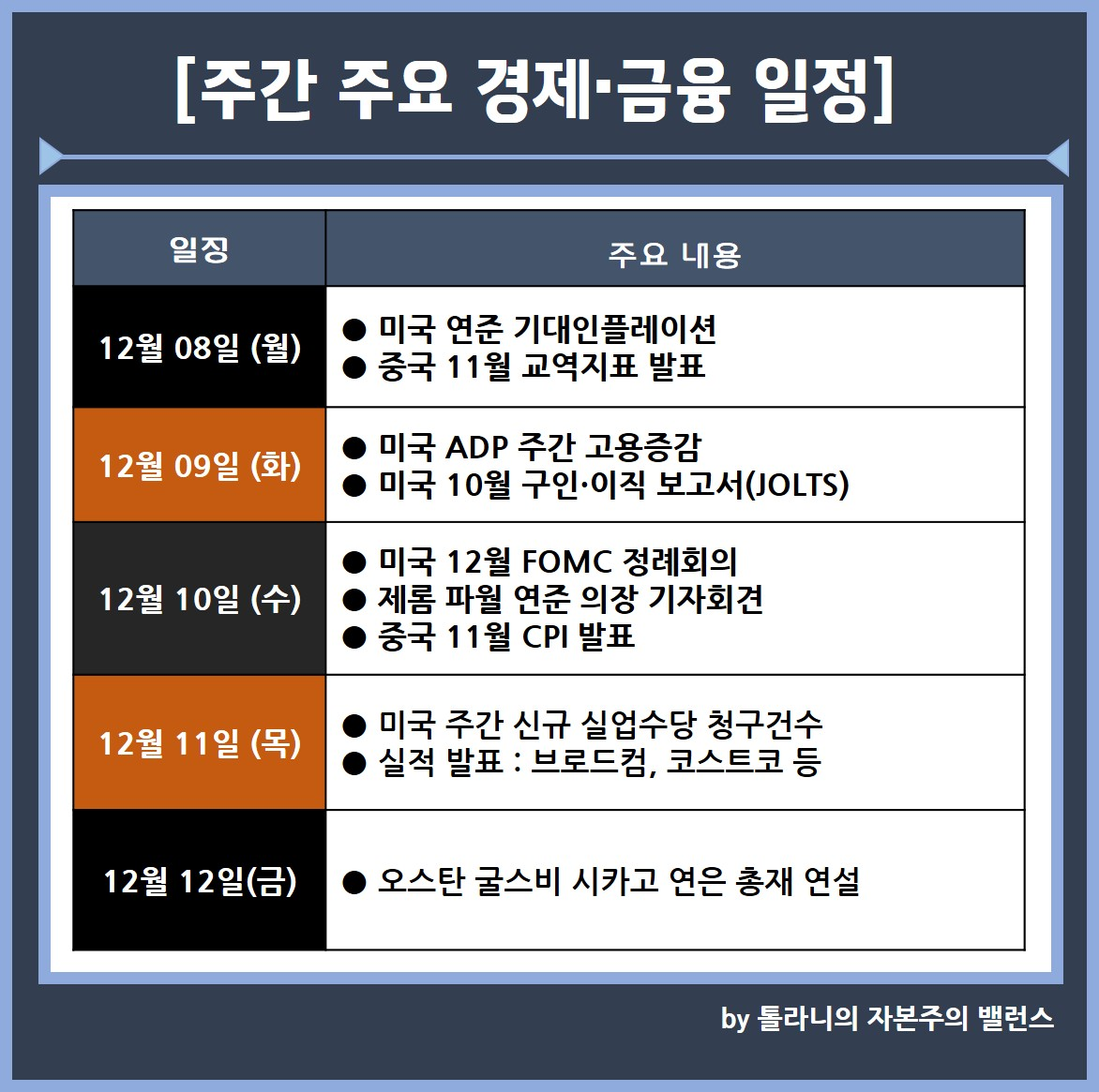 지금까지 '미국 12월 FOMC 회의 금리결정, 파월 연준 의장 연설 등 주요 국가 주간 경제·금융 일정 및 이슈' 관련하여 알아보았는데요.