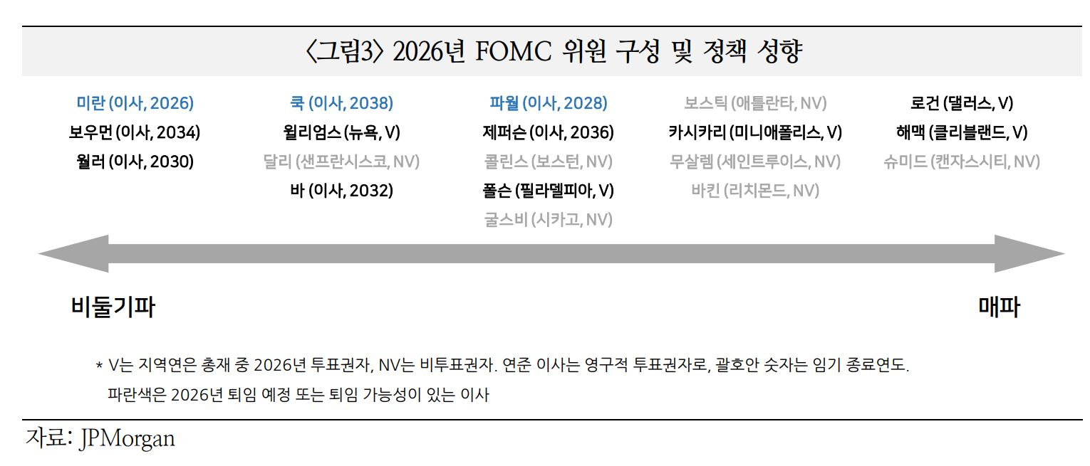 아직 시장이 연준의장 교체 이슈를 크게 반영하지 않고 있지만, 이는 연준의 구조 재편과 통화정책 신뢰 약화를 촉발하여 중장기 금융시장 불안정성을 키울 수 있는 중대한 변곡점이 될 수 있음에 유의할 필요