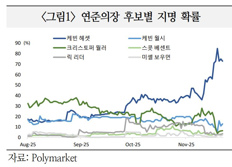 1) 공식적으로는 차기 연준의장 인선이 아직 진행 중이지만, 트럼프 대통령이 해셋 위원장에 대한 선호를 공개적으로 언급하면서 사실상 낙점되었다는 평가가 지배적