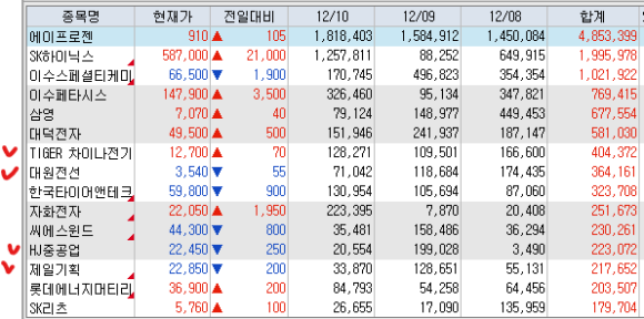 매도 : 삼성전자(+51.47%) 삼성SDI 솔브레인 이노와이어리스 동양고속(+111.56%) 셀바스AI RFHIC 피에스케이 뉴로메카 대한조선 달바글로벌
