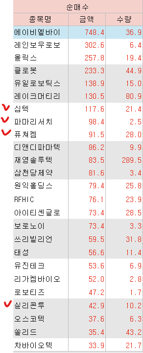 매수 : 맥쿼리인프라 Tiger미국30년국채커버드콜액티브 제이알글로벌리츠 삼성전자우 파마리서치 퓨처켐 실리콘투 Tiger차이나전기차 Tiger차이나휴머노이드로봇 HJ중공업 펩트론 세진중공업