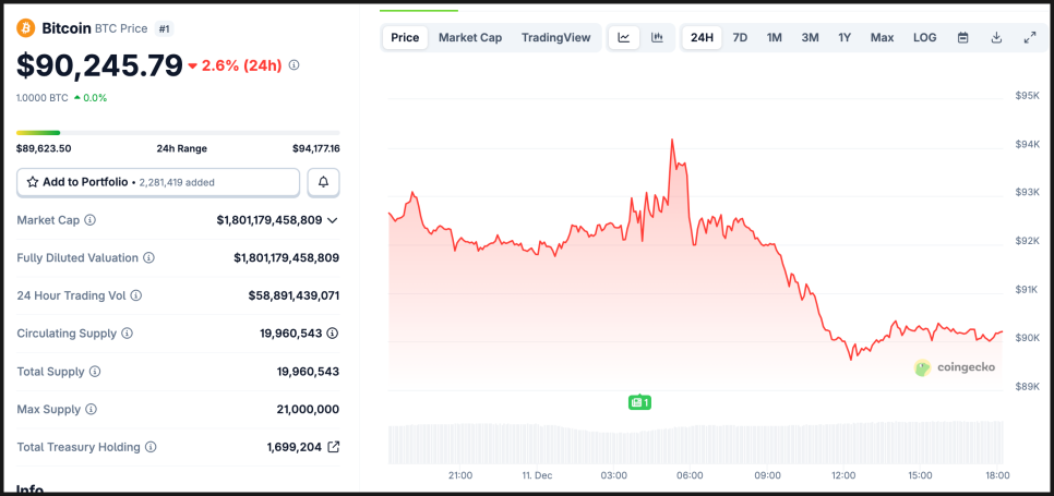 2025년 12월 11일 현 시점 가장 중요한 암호화폐 이슈 정리해 드리겠습니다.