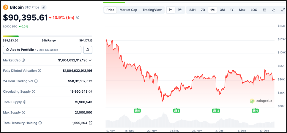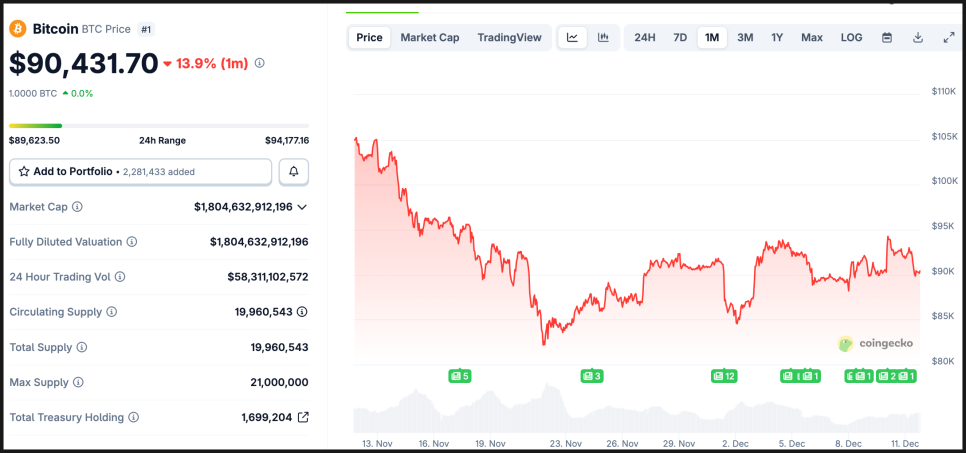 현재 비트코인 가격은 여전히 9만 달러 근처에서 움직이고 있습니다. 일단 당장은 9만 달러를 지켜주는지, 그리고 9만 4천 달러를 뚫어줄 수 있는지 지켜보는 게 중요할 것 같습니다.