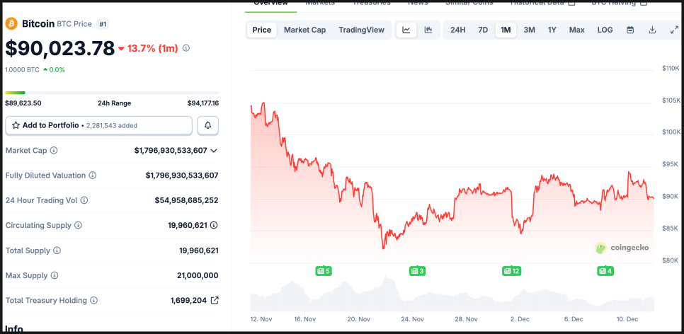 비트코인은 최근 2주 동안 세 번이나 94,000 달러를 돌파하려 했지만 매번 밀렸다는 점도 시장에 모멘텀이 부족한 신호로 해석됩니다. 웬만하면 95,000 달러에서 96,500 달러 구간을 강하게 뚫어주는 게 나은데 아직 힘이 부족해 보입니다. 변동성도 계속 낮아지면서 올해 남은 주요 이벤트는 사실상 끝났다는 말까지 나오고 있습니다.