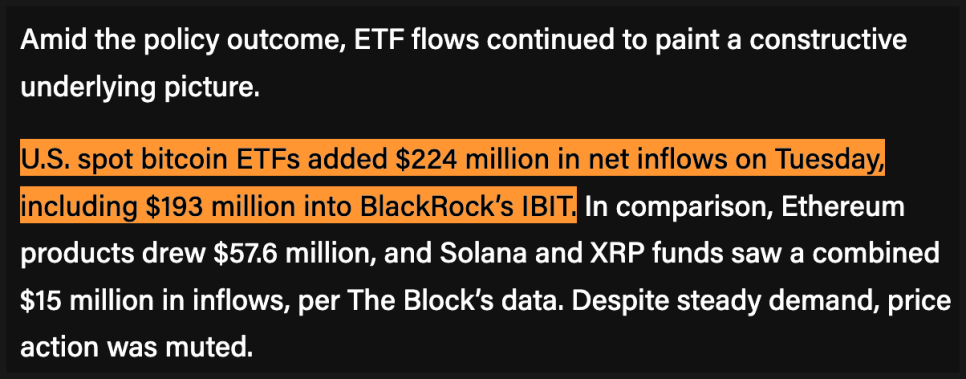 그런데 ETF 흐름만 보면 시장이 좋아 보여도 이상하지 않습니다. 미국 비트코인 현물 ETF는 하루 만에 2억2천만 달러가 순유입됐고, 그중 블랙록의 IBIT로만 1억9천만 달러가 들어갔습니다. 이더리움, 솔라나, XRP ETF도 꾸준히 자금이 들어오고 있습니다.