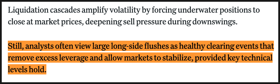 그럼 이런 청산이 꼭 부정적인 걸까요? 오히려 많은 분석가들은 이런 롱 청산이 장기적으로는 건강한 조정이라고 봅니다. 너무 한쪽에 쏠려 있던 포지션을 걷어내고 나면, 그 다음 구간에서 가격이 더 안정적으로 움직이기 때문입니다. 물론 중요한 지지 구간이 무너지지 않는 조건 하에서의 이야기죠.