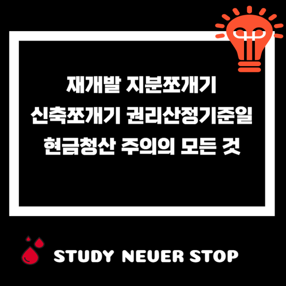 재개발 투자시 가장 중요한 것은 역시 수익성이다. 그런데 안전한 것이 보장되어야 하는데 그렇지 못하다면 현금청산이다. 오늘은 재개발 지분쪼개기 신축쪼개기 현금청산의 모든 것입니다.
