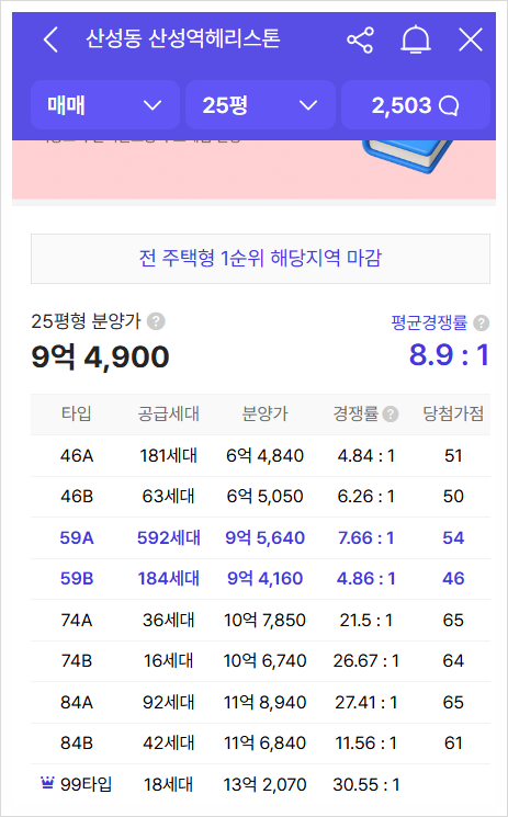 보통 대단지로 세워지는 재건축은 조합원 분양수익 + 일반분양 수익 + 상가 수익 + 임대주택 수익으로 이루어진다. 요새 산성역 25평 아파트 시세를 보면 9억~10억 수준이다. 평당 4천만원 이상이지만, 해당 구역에서 재건축이 시작될 시점이면 평당 5천만원 이상이 될 것이라 본다. 평당 4,200만원으로 계산했다. 조합원 분양수익은 3,113억이다.