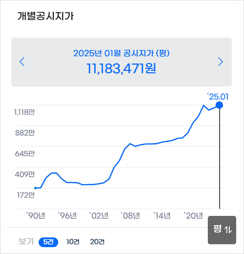 공시지가를 보면 평당 1,100만원 수준이다. 감정평가액 보정률은 1.2~1.6배 수준이라 1.4배하여 계산하면 평당 1,540만원이다. 평당 1,540만원 수준으로 계산하면 조합원 종전자산평가액은 1,141억이다.