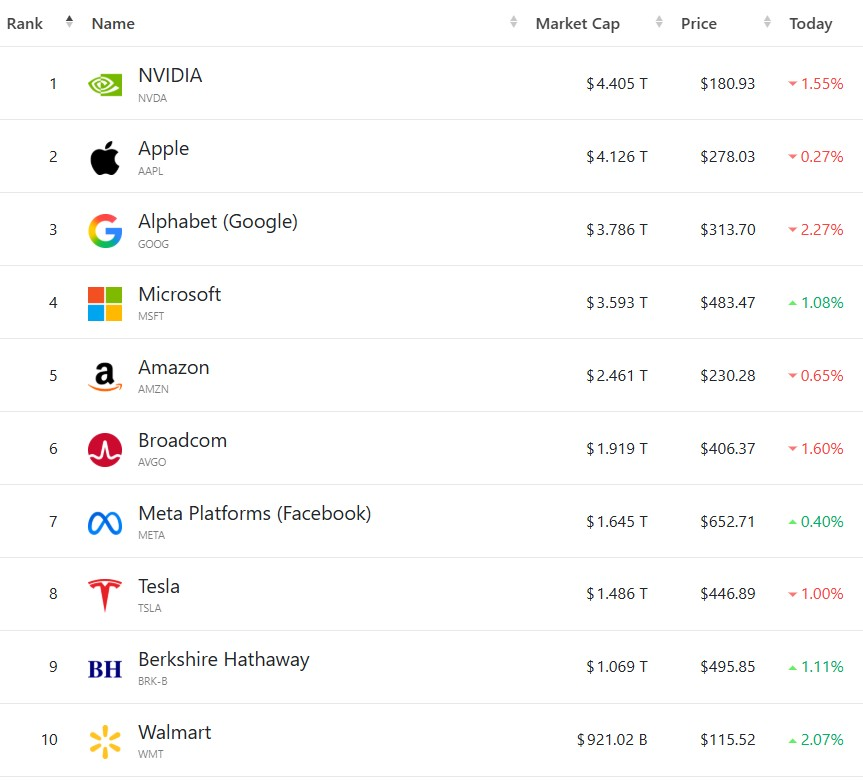 엔비디아는 전일 대비 -1.55%, 애플 -0.27%, 아마존 -0.65%, 알파벳 -2.43%, 테슬라 -1.01% 하락하면서 거래를 마쳤으며, 반면 마이크로소프트 +1.03%, 메타 +0.40% 상승하면서 장을 마감하였습니다.