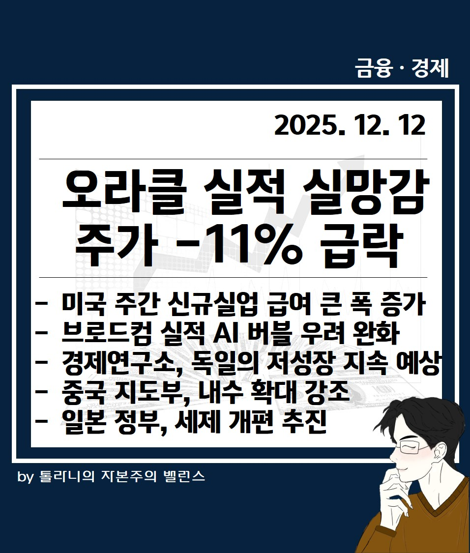 02. 미국 주간 신규실업급여, 큰 폭 증가. 브로드컴 실적은 AI 버블 우려 다소 완화