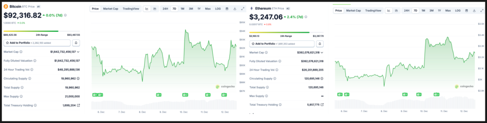 2025년 12월 12일 현 시점 가장 중요한 암호화폐 이슈 정리해 드리겠습니다.