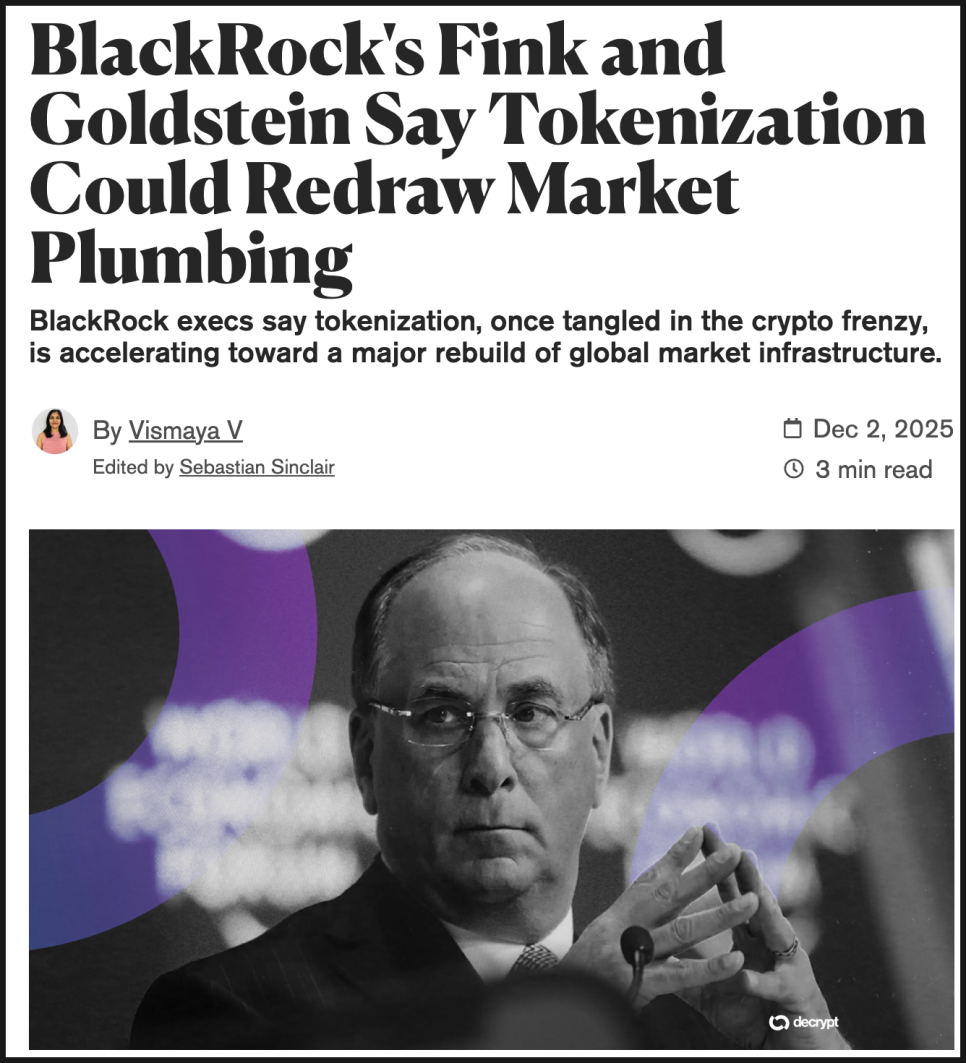 이 흐름은 블랙록의 래리 핑크와 롭 골드스타인 같은 인물들도 최근 강조한 내용과 닿아 있습니다. 두 사람 모두 “토큰화가 시장 인프라의 다음 단계”라고 말했죠. RWA(실물자산 토큰화) 시장 데이터를 보면 현재 토큰화된 실물자산의 약 66퍼센트가 이더리움에서 돌아가고 있는데, 규모로는 약 121억 달러입니다. 이미 시장의 중심이 어디에 있는지 보여주는 흐름이죠.