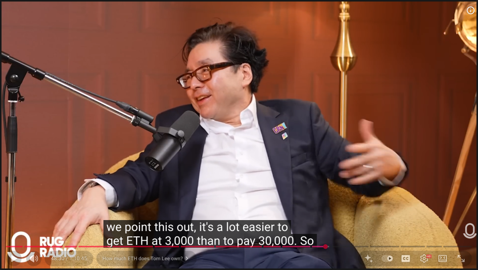 그러면서 최근 이더리움이 3천 달러 아래로 밀렸을 때, 개미 투자자들은 심리적으로 많이 지쳤지만, 톰 리는 “3만 달러에 사는 것보다 3천 달러에 사는 게 낫다”는 아주 단순한 논리로 이 구간에서 오히려 공격적으로 매수했다고 말합니다. 비트마인이 최근 몇 달 동안 이더리움 보유량을 크게 늘렸고, 2주 전보다 지금 이더리움을 두 배 이상 많이 사들이고 있다고 강조했는데요. 말로만 이더리움이 좋다고 하는 것이 아니라, 회사 현금을 직접 이더리움 쪽으로 쏟아붓고 있는 셈입니다.