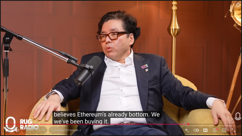 톰 리, 이더리움 바닥 찍었다고 다시 한 번 단언