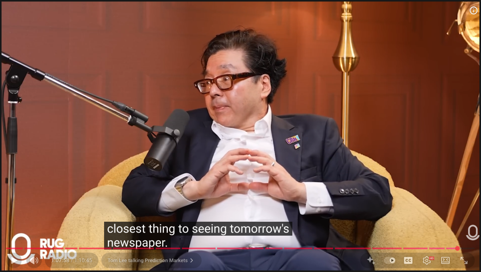 인터뷰어와 톰 리는 예측시장에 대해서도 잠깐 이야기했습니다. 톰 리는 예측시장을 “내일 신문을 미리 보는 것에 가장 가까운 도구”라고 표현합니다. 특히 미국 대선에서 여론조사와 전통적인 통계 모델은 민주당 후보의 승리를 가리키고 있었는데, 예측시장은 전혀 다른 결과를 보여 줬던 사례가 있었습니다. 실제로 예측시장이 모든 주를 정확히 맞힌 사례를 예로 들면서, 이런 시장이 앞으로 토큰화된 금융상품과 결합되면, 지금은 대형 헤지펀드만 할 수 있는 수준의 ‘팩터 베팅’을 개인도 할 수 있는 시대가 올 수 있다고 봅니다. 크립토라는 분야가 단순히 코인 가격이 오르내리는 시장을 넘어, 금융 인프라와 정보 인프라까지 재구성하는 공간이라고 보는 것이죠.