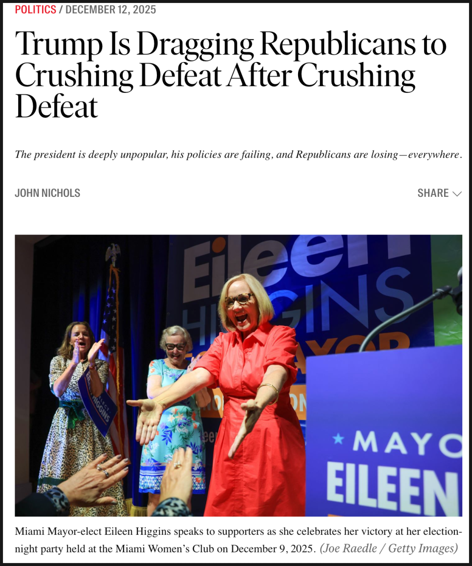 여기에 마이애미 시장 선거 참패가 겹치면서 트럼프의 정치적 입지는 더욱 흔들리고 있습니다. 트럼프 대통령이 자신이 직접 ‘지지 선언’을 했던 후보가 마이애미 같은 핵심 지역에서 19퍼센트포인트 차이로 패배했는데요. 공화당 텃밭인 마이애미에서 이렇게 대패를 했다는 것은 상당한 의미를 갖습니다. 현지 언론에서도 “트럼프 브랜드의 효용이 떨어지고 있다”는 분석이 이어지고 있고, 일부에서는 트럼프를 ‘킹메이커(King-maker)’가 아닌 ‘킹브레이커(King-breaker)’로 보는 시각도 등장하고 있습니다. 즉, 트럼프의 지원이 오히려 표심을 분산시킬 수 있다는 뜻이죠.