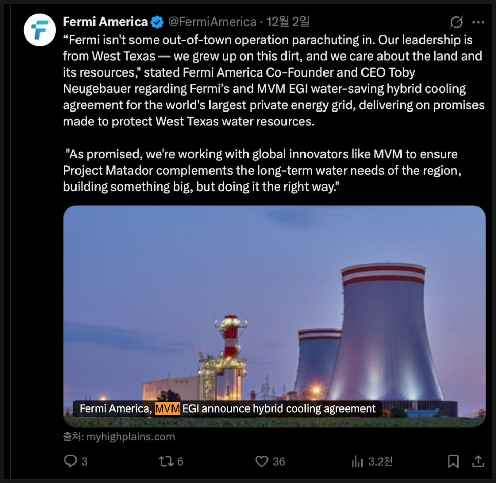 한편 최근 페르미 아메리카 내부에서는 여러 기술적, 전략적 진전이 계속 나오고 있기는 했습니다. 페르미 아메리카는 ‘초대형 전력 공급 캠퍼스’가 지역사회와 환경에 부담이 되지 않도록 다양한 기술적 보완책을 마련하고 있는데요.