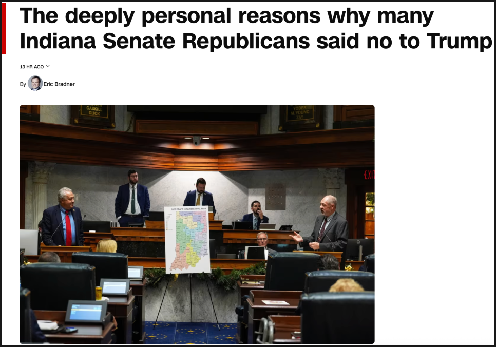 예를 들어 최근 인디애나주 상원에서 공화당 의원들마저 트럼프 대통령이 직접 압박한 선거구 재획정안을 대거 반대표로 뒤집었다는 매우 상징적인 소식이 있었죠. 트럼프 대통령이 세 차례나 지명한 부통령 제이디 밴스(JD Vance)를 현지에 보낼 정도로 총력전을 펼쳤음에도 불구하고, 공화당 의원 21명이 민주당과 손잡고 트럼프의 요구를 거부했습니다. 트럼프 대통령의 “협박, 조롱, 과도한 압박”이 오히려 역효과를 냈다는 평가도 나왔고요. 공화당의 심장부에서 이런 항명 사태가 벌어졌다는 건, 트럼프의 ‘명령권’ 자체가 약해지고 있음을 보여주는 장면입니다.