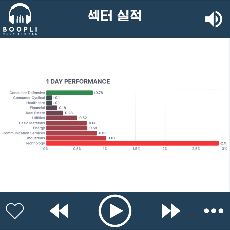소비 순환재, 헬스케어 섹터는 강보합, 부동산, 금융 섹터는 약보합 마감