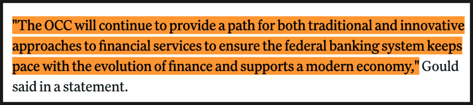 정책 분위기가 바뀐 배경에는 도널드 트럼프 행정부의 방향 전환도 있습니다. 그의 임기 동안 OCC는 예전의 ‘코인 회의론적’ 태도에서 벗어나 친암호화폐 입장으로 선회했습니다. 현 OCC 수장 조너선 굴드(Jonathan Gould)는 “전통 금융과 혁신 금융 모두 연방 은행 시스템 안에서 함께 진화할 수 있어야 한다”고 강조했습니다.