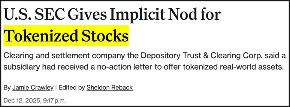 여기에 미국 증권거래위원회(SEC)가 일부 ‘토큰화된 주식’을 사실상 승인했다는 소식도 나왔습니다. 공식 인가라기보다는, SEC가 “우리는 이 활동에 대해 제재하지 않겠다”고 답변하는 노액션 레터(no-action letter)를 발급한 방식인데요. 실질적으로는 일정 조건 아래에서 토큰화된 증권을 발행·거래할 수 있다는 의미입니다.