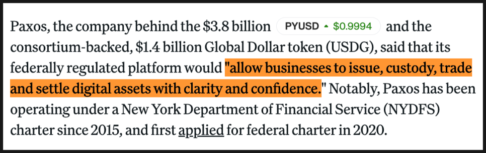 팍소스(Paxos) 역시 이번 결정을 환영했습니다. 팍소스는 PYUSD와 USDG 같은 안정적 실사용 스테이블코인을 운영하는 회사이며, 그동안 뉴욕 금융청(NYDFS) 규제 아래 있었는데 이제 연방 인가로 한 단계 넓어진 셈입니다.
