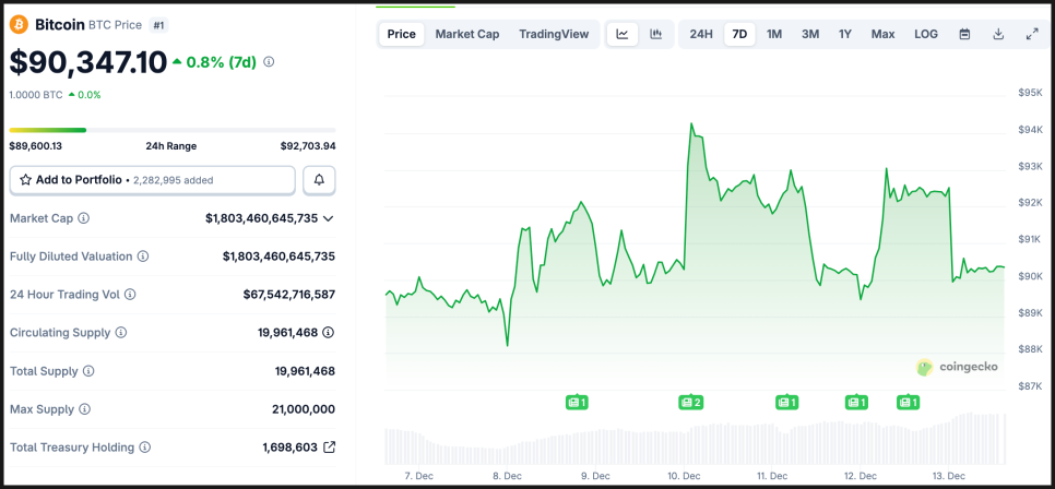 2025년 12월 13일 현 시점 가장 중요한 암호화폐 이슈 정리해 드리겠습니다.